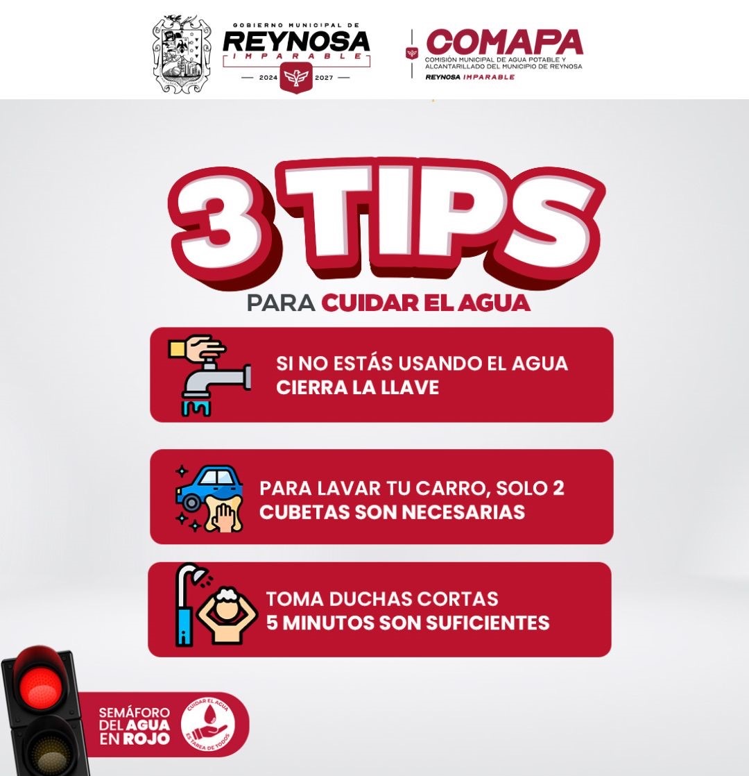 La Comisión Municipal de Agua Potable y Alcantarillado de Reynosa invita a los usuarios a continuar reforzando las acciones de ahorro y uso responsable del vital líquido en todos los hogares de la ciudad a fin de garantizar su disponibilidad para todos.