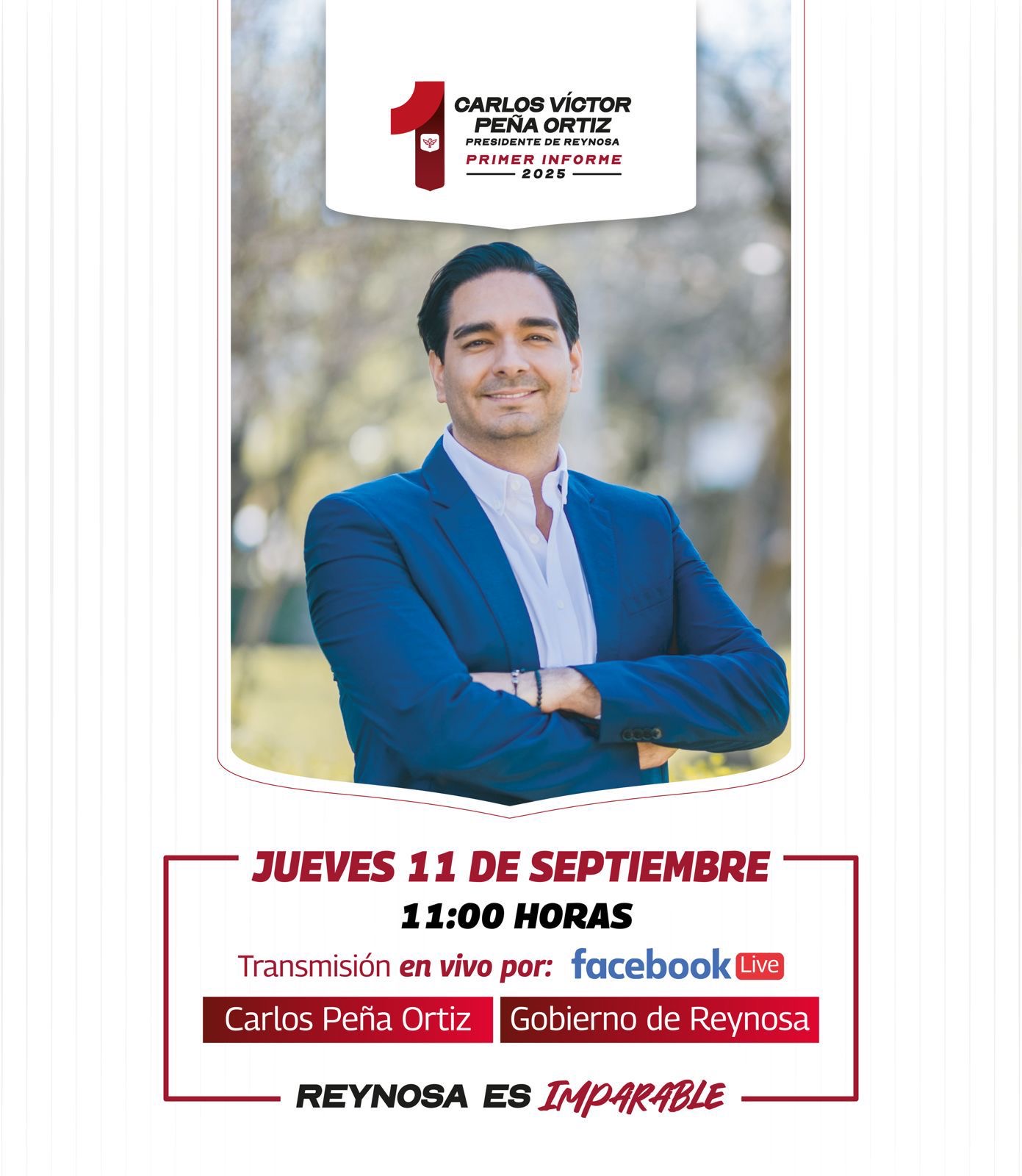 El Alcalde Carlos Peña Ortiz comparecerá ante los reynosenses con la presentación de su Primer Informe de Gobierno, en el cual ofrecerá los logros de su administración a través de las 10 Agendas de Trabajo que integran los 4 Ejes Transversales del Plan Municipal de Desarrollo: