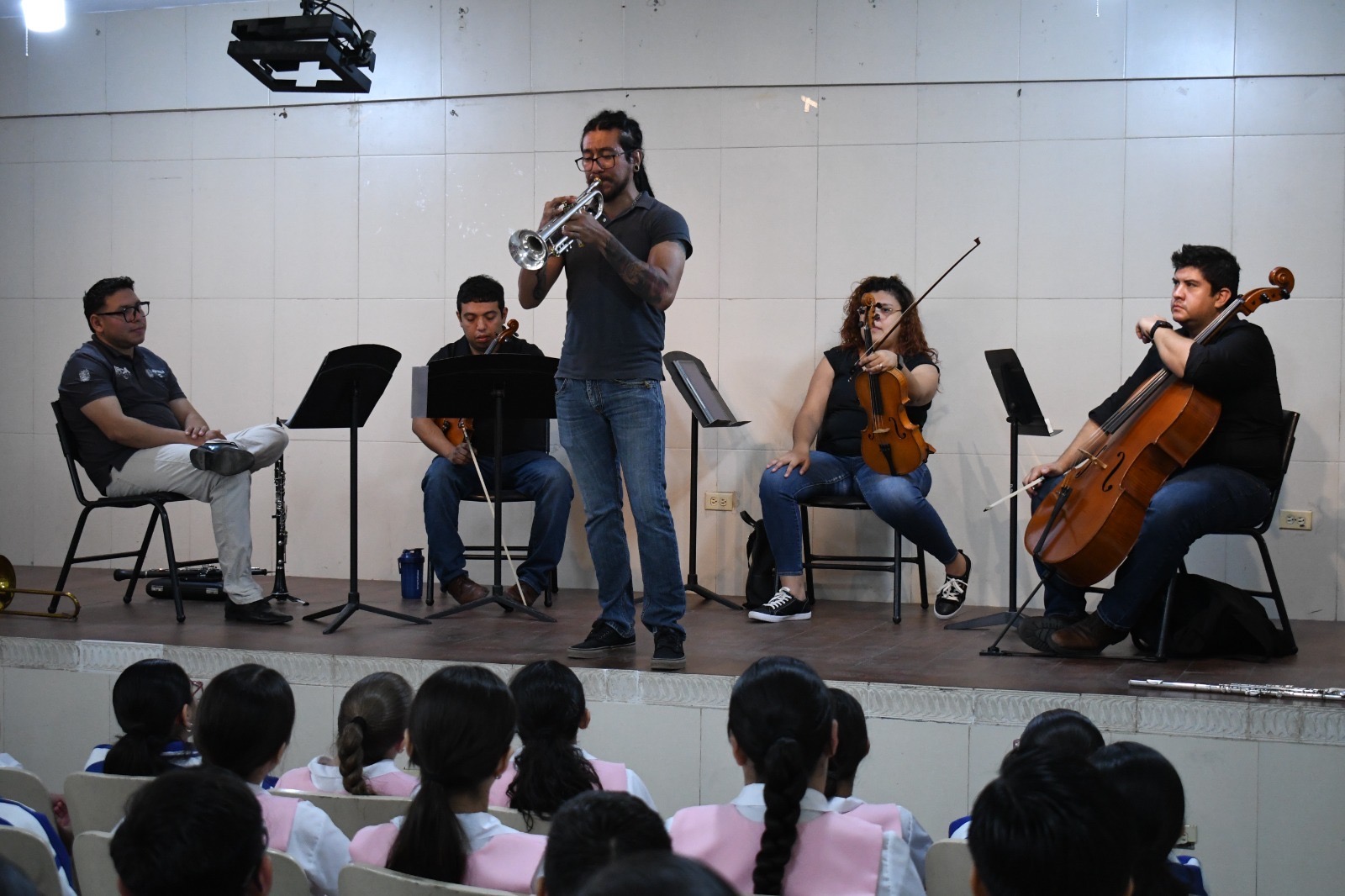 La Orquesta de Cámara del IRCA se presentó en la Escuela Secundaria General No. 9 “Gabriel Saldívar y Silva”, donde los directivos celebraron la iniciativa del Instituto, destacando el entusiasmo de varios alumnos por integrarse al mundo de las bellas artes.
