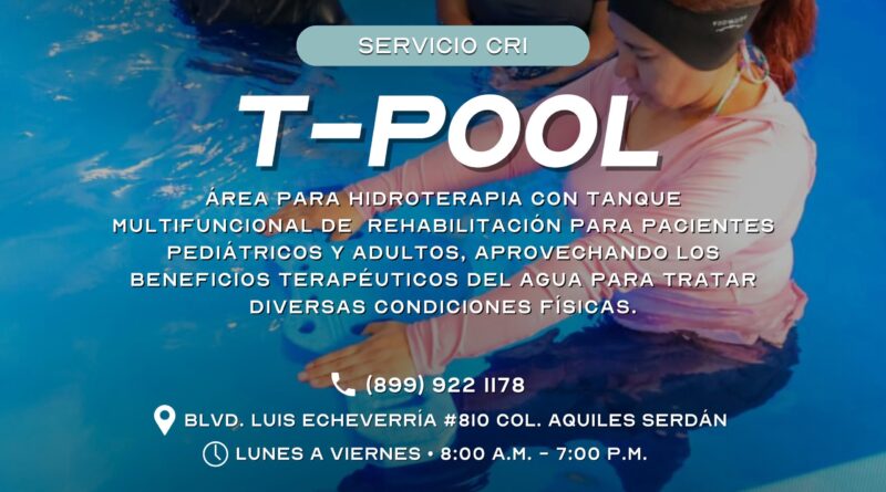 El Sistema DIF Reynosa que preside Carlos Luis Peña Garza, a través del Centro de Rehabilitación Integral, pone a disposición de la ciudadanía el servicio T-Pool, un espacio de hidroterapia diseñado para atender a pacientes pediátricos y adultos que requieren apoyo en su proceso de rehabilitación.
