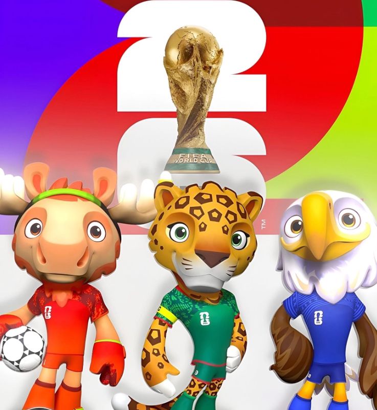 : Maple, el alce; Zayu, el jaguar; y Clutch, el águila. Estas mascotas representan la diversidad y la pasión del fútbol en los países anfitriones: Estados Unidos, Canadá y México.
