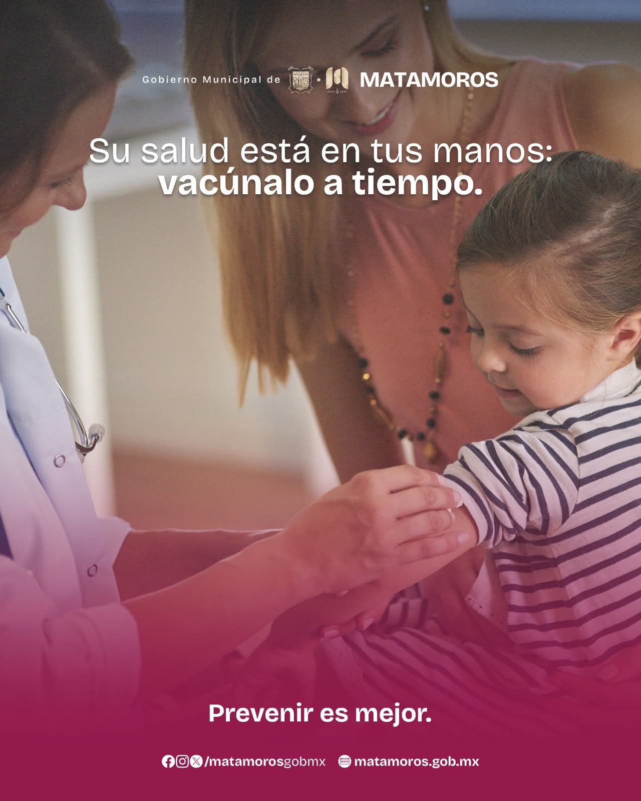 H. Matamoros, Tamaulipas.- El gobierno municipal de Matamoros, encabezado por Beto Granados, hace un llamado a las madres, padres y tutores a cumplir de manera responsable con el esquema de vacunación de niñas y niños, al considerar esta acción como fundamental para el desarrollo y bienestar integral de la infancia.