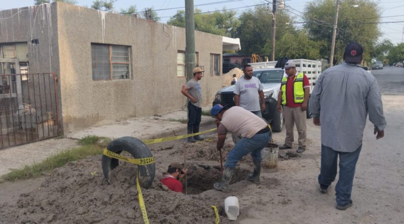 Atendiendo las indicaciones del Alcalde, Carlos Peña Ortiz, la Comisión Municipal de Agua Potable y Alcantarillado de Reynosa realiza maniobras de reparación de una fuga de agua potable sobre la calle Pino Suárez, entre Allende y Zaragoza, en la Zona Centro, con el objetivo de evitar el desperdicio de este importante recurso y mejorar la distribución del servicio en el sector.