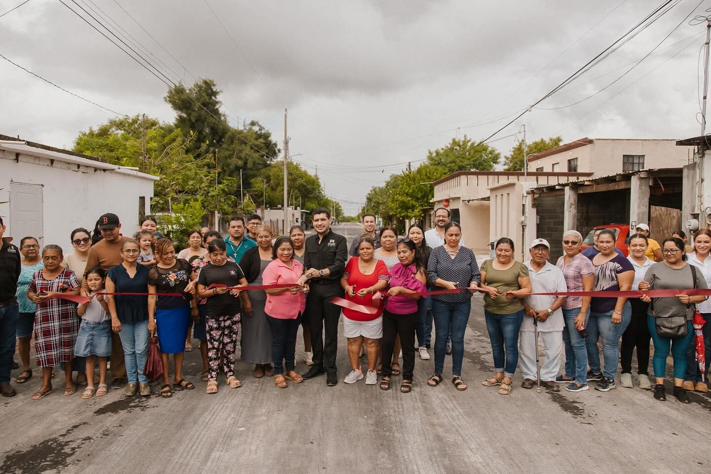 H. Matamoros, Tamaulipas.– Con el tradicional corte de listón, el alcalde Beto Granados, acompañado de vecinas y vecinos, inauguró la pavimentación asfáltica de la calle Amistad, en el tramo que va de la calle Canek a la calle Tamaulipas, dentro de la colonia Integración Familiar. Esta obra forma parte del compromiso del gobierno municipal por mejorar la infraestructura vial en distintas zonas de la ciudad.