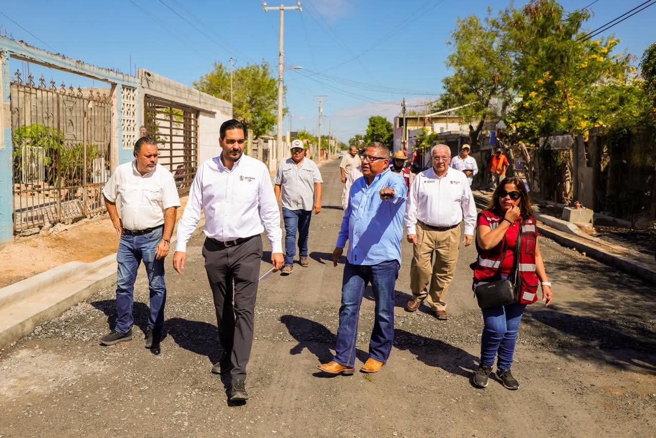 Reynosa avanza cada día con el Programa de Obra Pública Más Grande en su Historia; la pavimentación hidráulica de la calle Vega Domínguez, de la colonia Américo Villarreal Guerra, fue supervisada por el Presidente Municipal Carlos Peña Ortiz y funcionarios del R. Ayuntamiento.