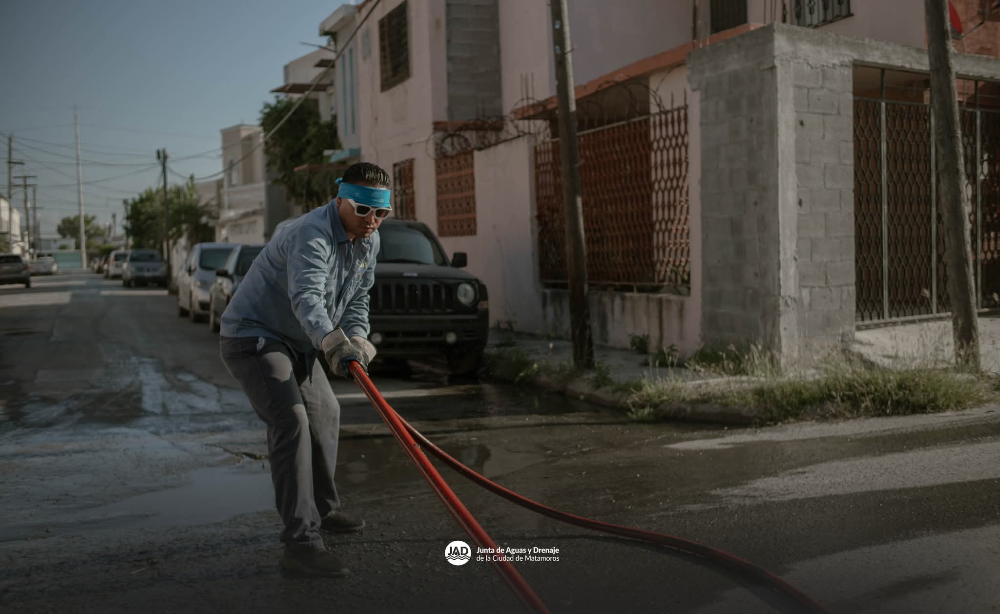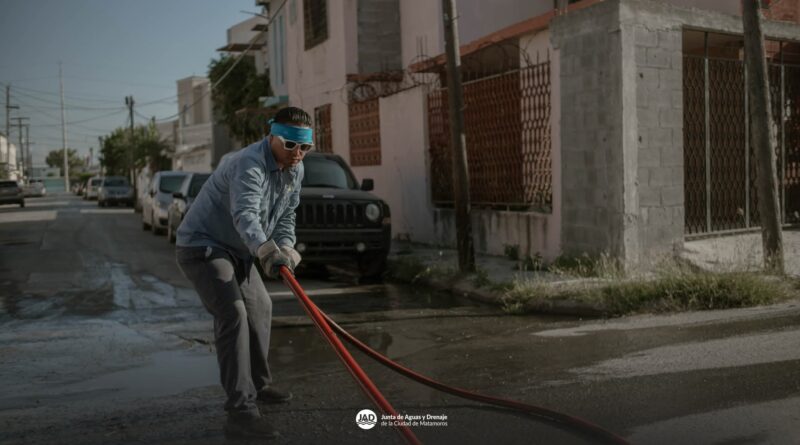 H. Matamoros, Tamaulipas.- Por instrucciones del Presidente Municipal Beto Granados, personal de la Junta de Aguas y Drenaje continúa realizando labores de limpieza y desazolve en distintos sectores de la ciudad.