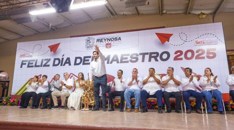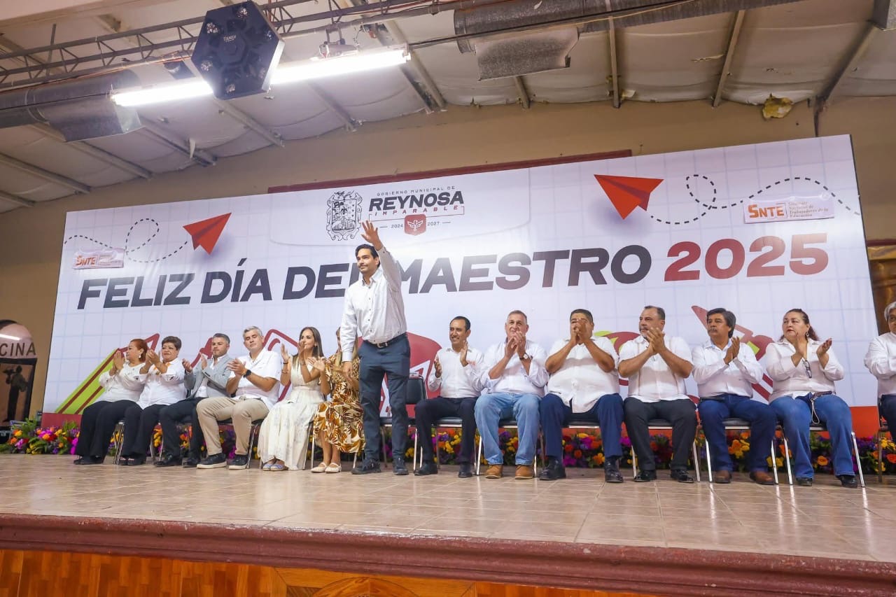 Ante los Maestros el Presidente Municipal reconoció su trabajo y el valor fundamental de la educación como la herramienta principal para el desarrollo, «nosotros desde el Gobierno siempre vamos a construir un municipio mejor de la mano de ustedes y si a ustedes les va bien a Reynosa le va bien».