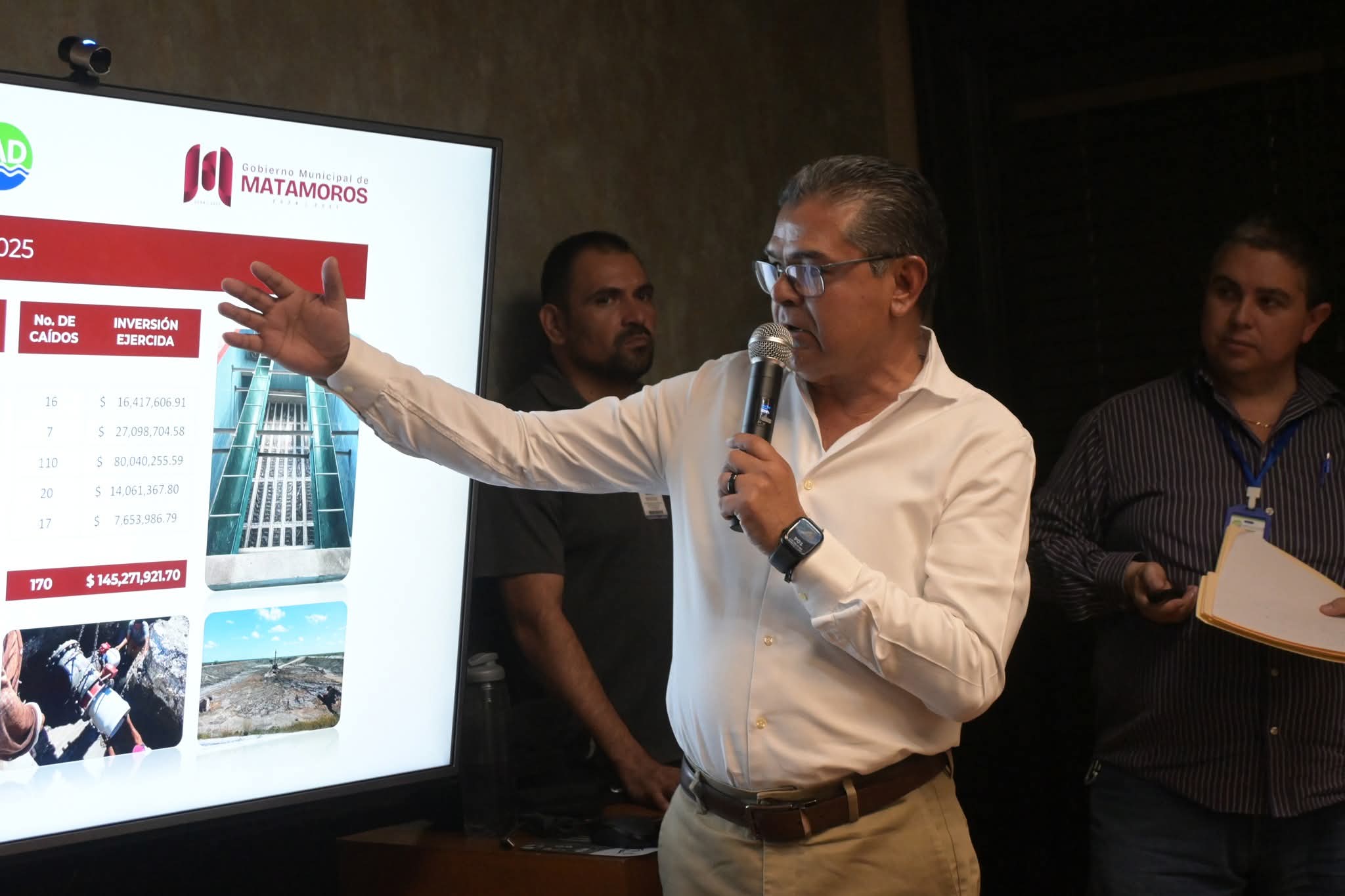 H. Matamoros, Tamaulipas.- En la Presidencia Municipal de Matamoros se llevó a cabo la Cuarta Sesión Ordinaria del año 2025 del Consejo de Administración de la Junta de Aguas y Drenaje (JAD), la cual fue presidida por el alcalde Beto Granados Fávila, quien funge como presidente del consejo. En la reunión participaron también el Gerente General de la JAD, Ing. Marco Antonio Hernández Acosta; el Subsecretario de Recursos Hidráulicos para el Desarrollo Social, Ing. Víctor Manuel Moreno García; así como los diputados C.P. Isidro Vargas Fernández y C.P. Eliphalet Gómez Fernández, entre otros miembros del consejo.