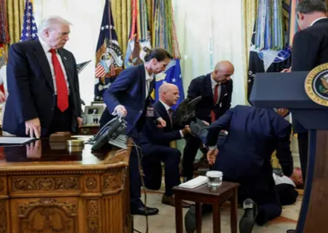 se desmayó durante una conferencia de prensa del presidente Donald Trump.