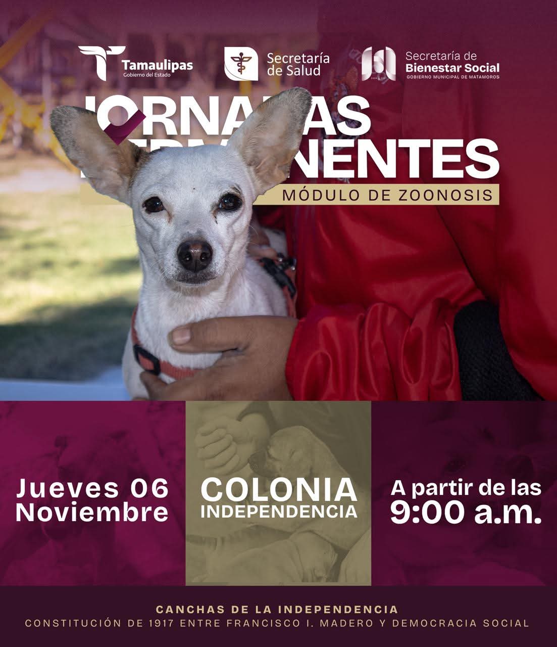 H. Matamoros, Tamaulipas.- Porque su bienestar también importa, este jueves, el módulo de zoonosis llegará a la Colonia Independencia para ofrecer servicios gratuitos de atención y cuidado para tus mascotas.