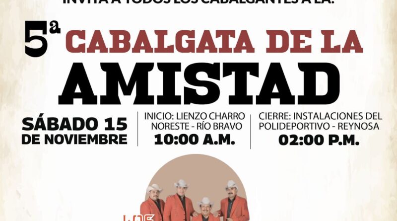 El Gobierno Municipal de Reynosa, que encabeza el Alcalde Carlos Peña Ortiz, invita a todas y todos los cabalgantes a la Quinta Edición de la Cabalgata de la Amistad, celebrando la tradición y el orgullo del Norte de Tamaulipas.