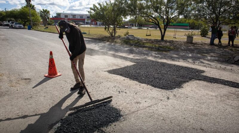 H. Matamoros, Tamaulipas.- Por instrucciones del alcalde Beto Granados el Gobierno Municipal realizó trabajos de mejoramiento vial en diversos puntos de la ciudad, beneficiando a las colonias Francisco Castellanos, Playa Sol, Lomas de San Juan, Villa Las Torres Sector 1, San Rafael y Treviño Zapata, así como a las áreas de Ciudad Industrial y la Sección 16.