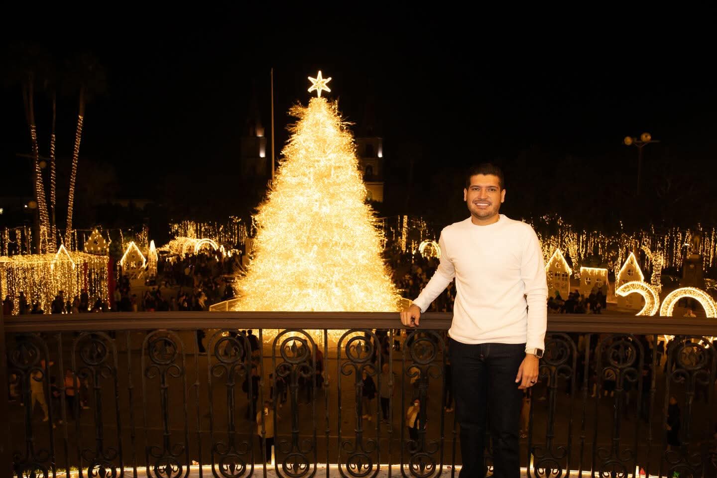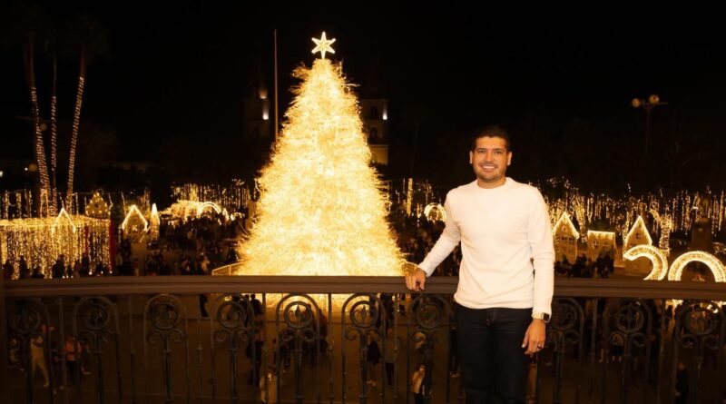 H. Matamoros, Tamaulipas.– Por iniciativa del alcalde Beto Granados, hoy domingo de 7:30 a 8:30 de la noche, las familias de Matamoros podrán subir al balcón de la Presidencia Municipal para tomarse su fotografía con el pino navideño iluminado y la Plaza Principal como escenario.