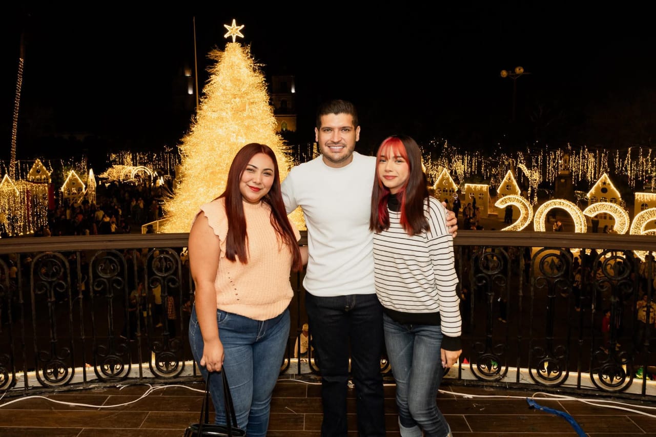 H. Matamoros, Tamaulipas.- Con la presencia del alcalde Beto Granados, residentes de Matamoros tuvieron la oportunidad de subir al balcón de la Presidencia Municipal para tomarse su foto en familia, con el pino iluminado y la Plaza Principal como el marco perfecto que hace brillar a Matamoros.