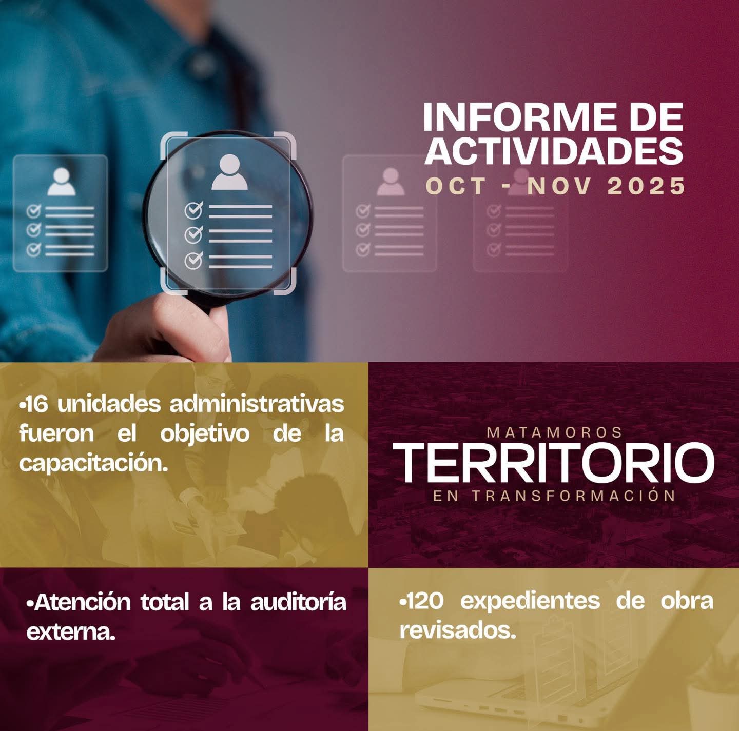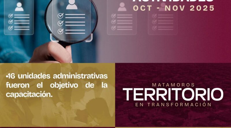 H. Matamoros, Tamaulipas.- En seguimiento a la visión de trabajo impulsada por el alcalde de Matamoros, Beto Granados, la Contraloría Municipal reforzó los procesos de supervisión, capacitación y verificación con el objetivo de garantizar el correcto funcionamiento de la administración pública y el adecuado uso de los recursos municipales.