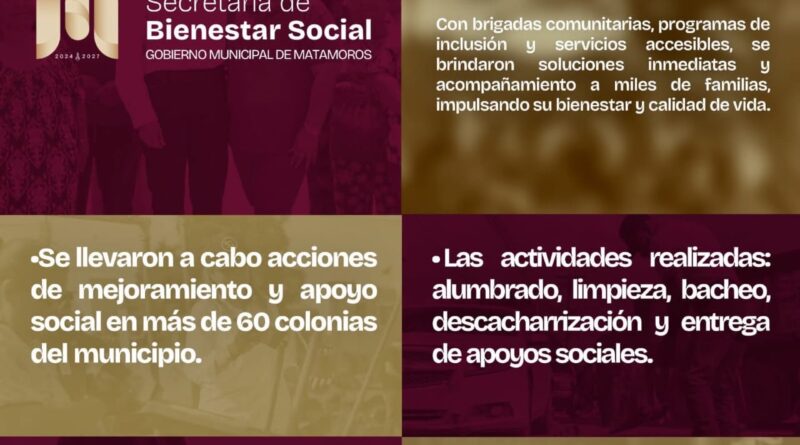H. Matamoros, Tamaulipas.- En seguimiento a las políticas públicas impulsadas por el alcalde de Matamoros, Beto Granados, la Secretaría de Bienestar Social continúa trabajando de manera cercana con la ciudadanía, fortaleciendo la atención en las colonias del municipio mediante acciones integrales que impactan positivamente en la calidad de vida de las familias.