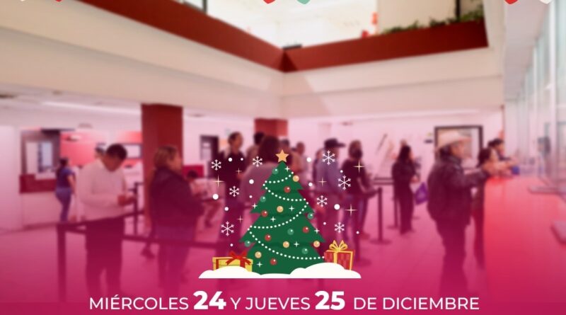 La Comisión Municipal de Agua Potable y Alcantarillado de Reynosa informa a los usuarios que, con motivo de las festividades navideñas, las sucursales del organismo permanecerán cerradas los días miércoles 24 y jueves 25 de diciembre.