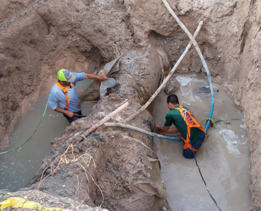 Durante estas acciones, personal operativo del organismo realizó maniobras para la instalación de una abrazadera especial de 36 pulgadas de diámetro, con el objetivo de contener la fuga, evitar el desperdicio del vital líquido y mejorar el funcionamiento de la red de distribución en este sector de la ciudad.