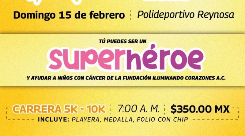 Conviértete en un superhéroe y corre por una gran causa, ya que todo lo recaudado en Pequeños Héroes 2026, en el Polideportivo Reynosa, será para apoyar a niñas y niños con cáncer de la Fundación Iluminando Corazones A. C.