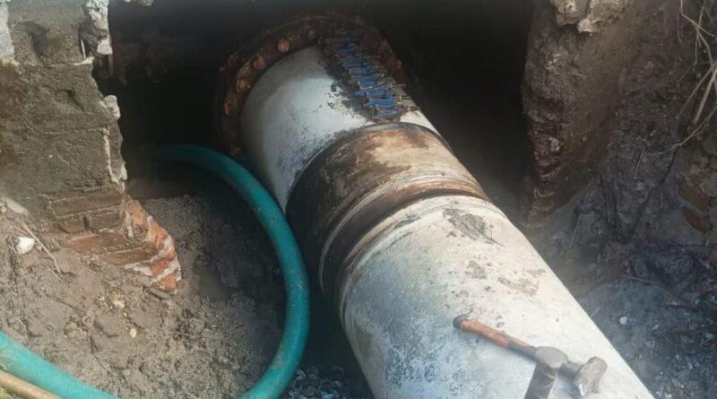 Las labores consisten en el cambio de una línea de 24 pulgadas de asbesto cemento (acueducto), trabajo que requiere maniobras especializadas y el esfuerzo continuo de las cuadrillas, quienes mantienen el ritmo de trabajo para concluir en el menor tiempo posible y con los estándares adecuados de seguridad y calidad.