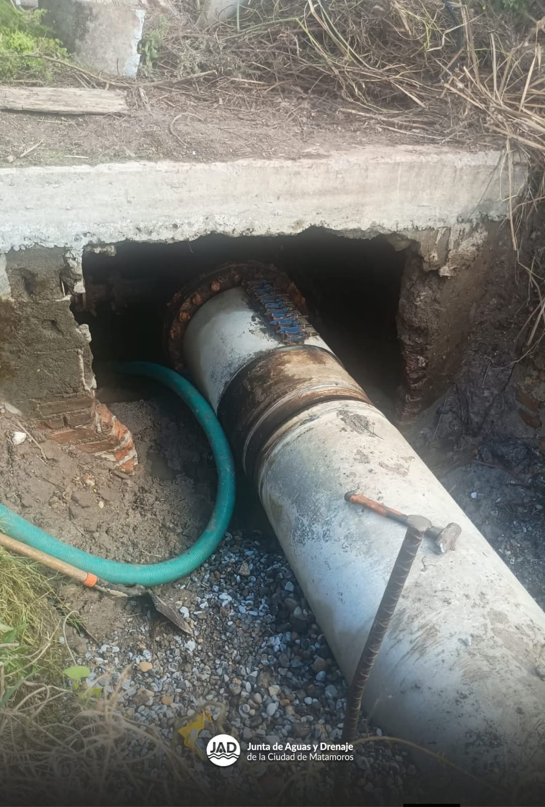 H. Matamoros, Tamaulipas.- En atención a la coordinación intermunicipal y por instrucción del alcalde de Matamoros, Beto Granados, personal de la Junta de Aguas y Drenaje brinda apoyo a Comapa Valle Hermoso en la reparación de una línea de agua potable, reafirmando el compromiso de trabajar en equipo para garantizar servicios básicos de calidad a la ciudadanía.