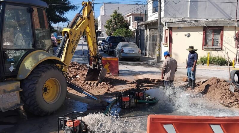 Por instrucciones del Alcalde, Carlos Peña Ortiz, la Comisión Municipal de Agua Potable y Alcantarillado de Reynosa concluyó maniobras de reparación en tubería de asbesto de 4 pulgadas de diámetro sobre calle Agustín Lara, esquina con José Alfredo Jiménez, en la colonia Santa Cecilia, trabajos que permitieron corregir una fuga y evitar el desperdicio del vital líquido, beneficiando a las familias del sector.