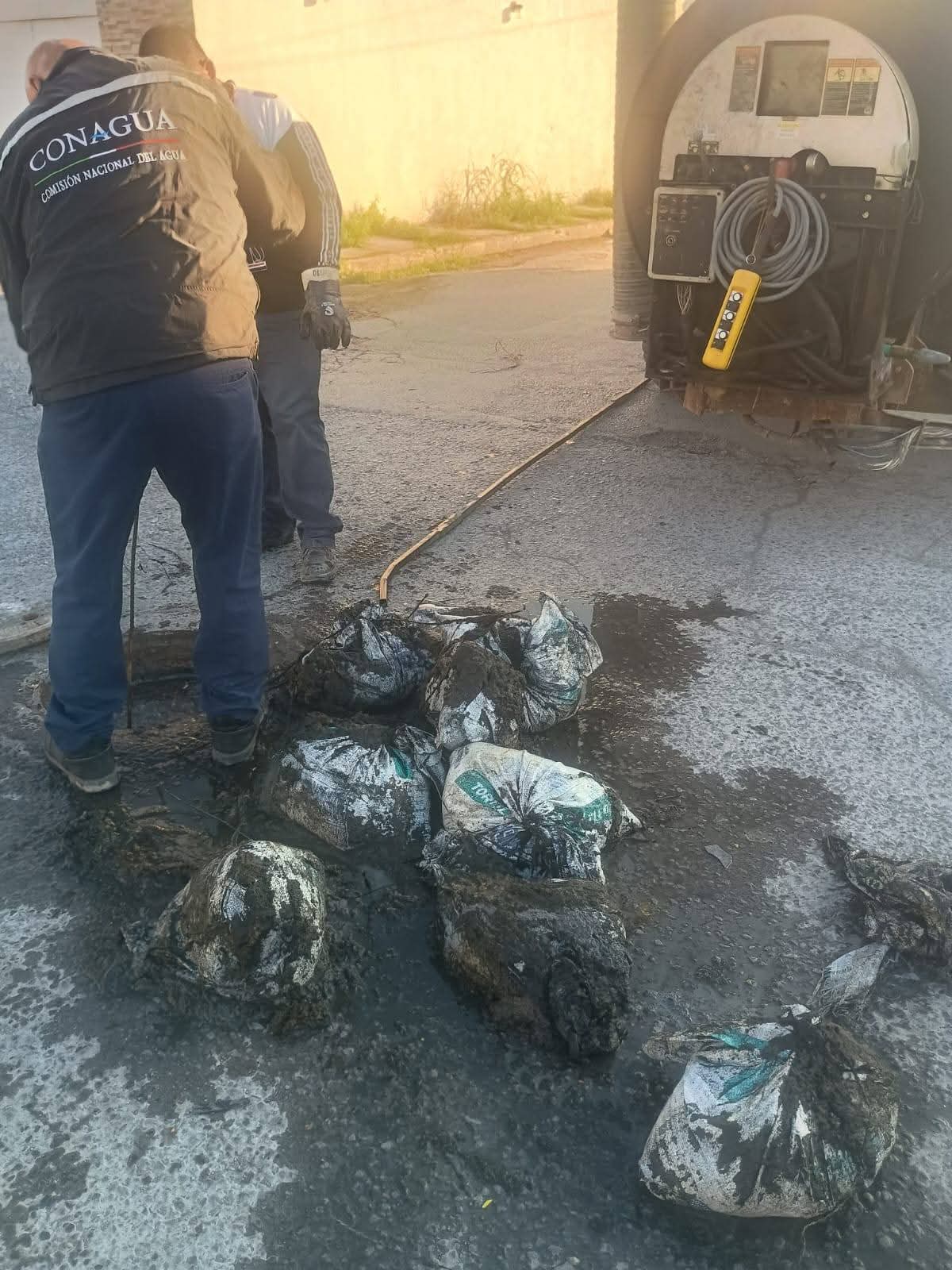 La obstrucción, provocada por costales, no permitía el libre paso de las aguas negras hacia el subcolector ubicado en la calle Abedul, en la colonia Mariano Matamoros.