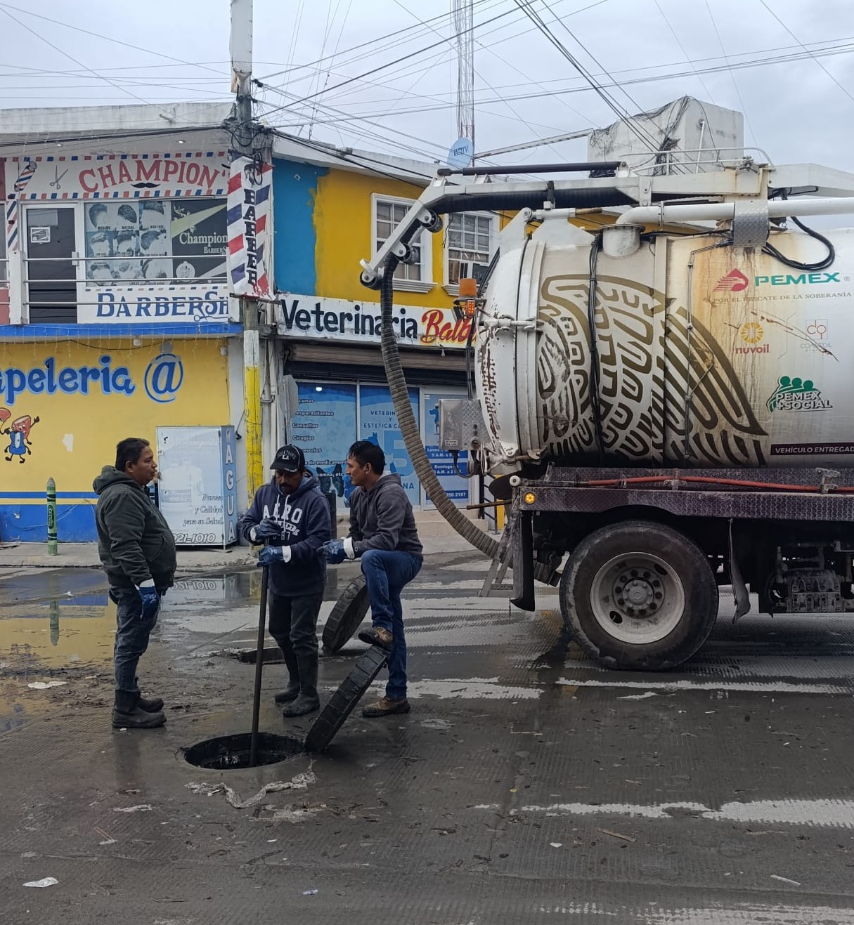 Por instrucciones del Alcalde, Carlos Peña Ortiz, la Comisión Municipal de Agua Potable y Alcantarillado de Reynosa llevó a cabo maniobras de sondeo en la línea general de drenaje sanitario en distintos sectores de la ciudad, con el objetivo de mantener bajos los niveles de la línea y garantizar el correcto funcionamiento del sistema sanitario.