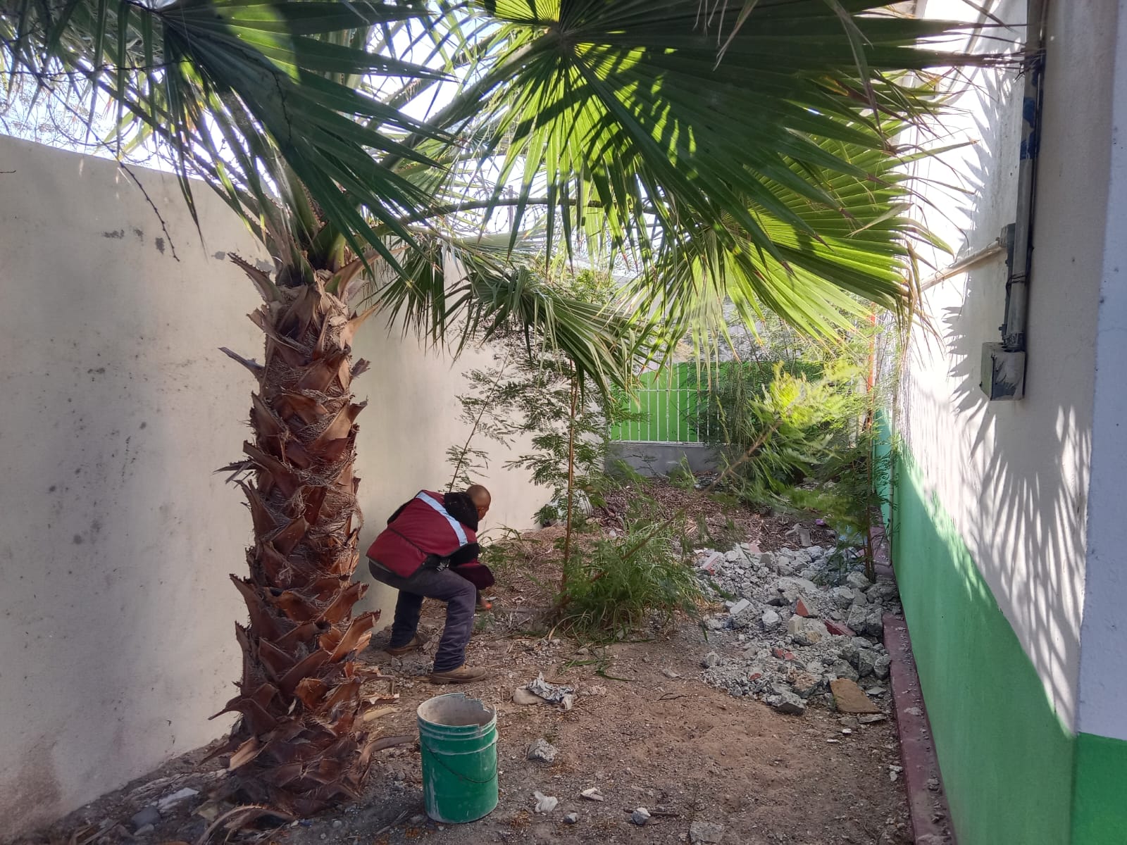 Limpieza y corte de maleza en jardín de niños Teodosia Martínez de Armas