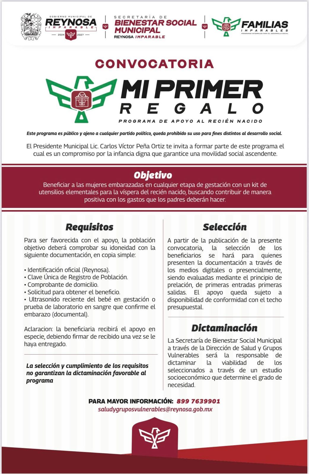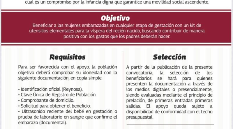 El Alcalde Carlos Peña Ortiz invita a las mujeres embarazadas que residan en Reynosa, a inscribirse al programa municipal «Mi Primer Regalo», y puedan recibir el beneficio social mediante el cumplimiento de sencillos requisitos.