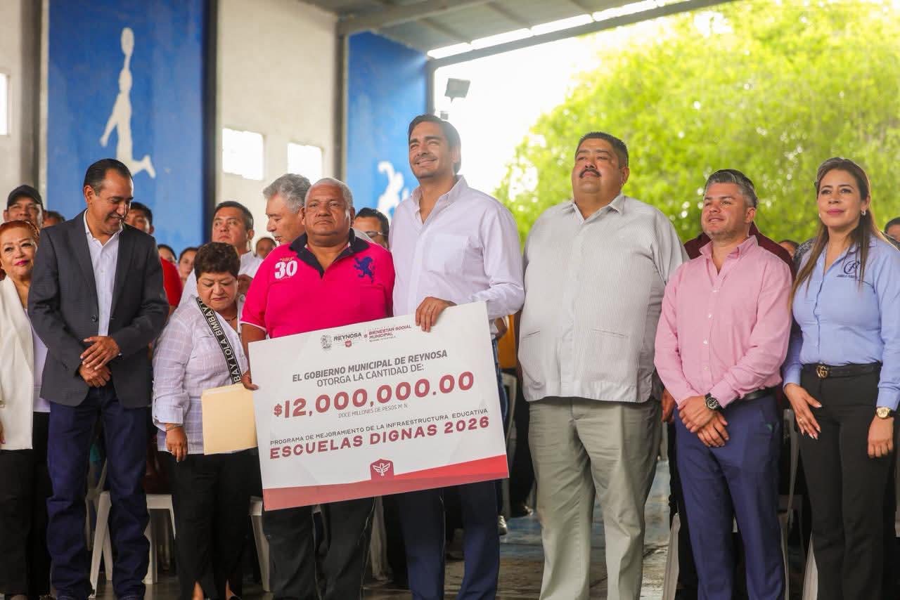 «Escuelas Dignas 2026» aporta 200 intendentes pagados por el Gobierno del Alcalde Carlos Peña Ortiz, quien dijo ante los presentes: «nosotros apostamos mucho a la educación por varias razones. Este programa inició hace un par de años de una gran necesidad, sabemos que hay muchas escuelas que no cuentan con intendentes, falta personal, y es ahí donde entra el Municipio para poder subsanar esas carencias y poder crear mejores condiciones laborales y educativas en todos los rincones de Reynosa».
