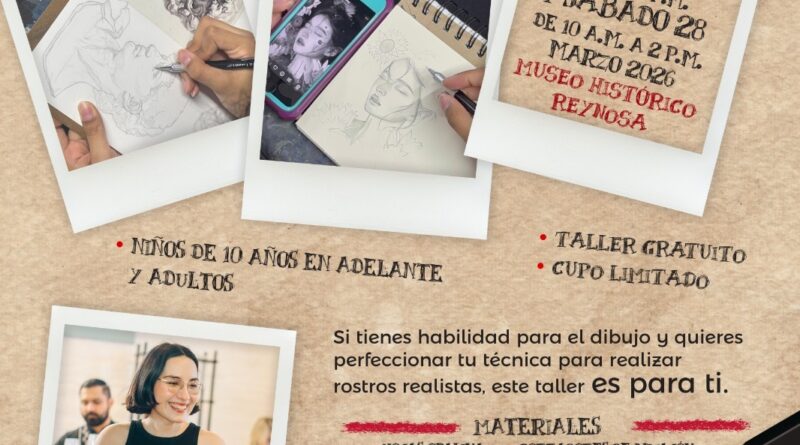 El Gobierno de Reynosa, que preside el Alcalde Carlos Peña Ortiz, invita a niños, jóvenes y adultos a inscribirse al Taller de Rostro Realista en Lápiz de Grafito, que será impartido por la artista Lilian Salas en el Museo Histórico Reynosa.