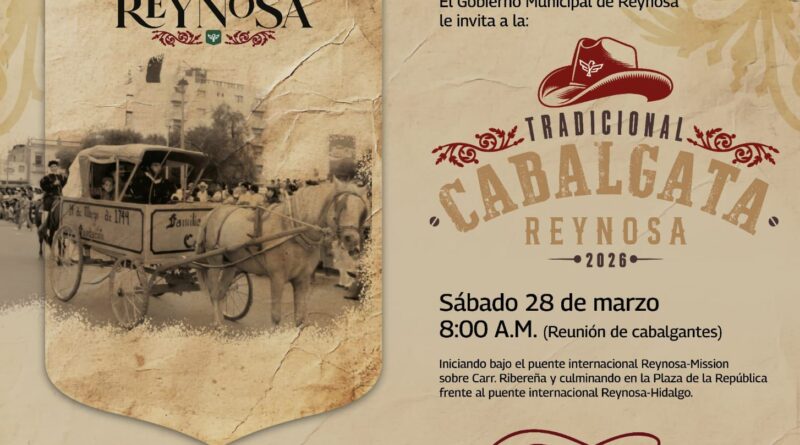 La Cabalgata 2026 del 277 Aniversario de la Fundación de Reynosa será encabezada por el Presidente Municipal Carlos Peña Ortiz el próximo sábado a las 8:00 de la mañana, recreando parte del histórico recorrido que en el año 1802 hicieron los pobladores de la Villa de Nuestra Señora de Guadalupe de Reynosa para establecerse en las Lomas de San Antonio, actual ubicación de la ciudad.
