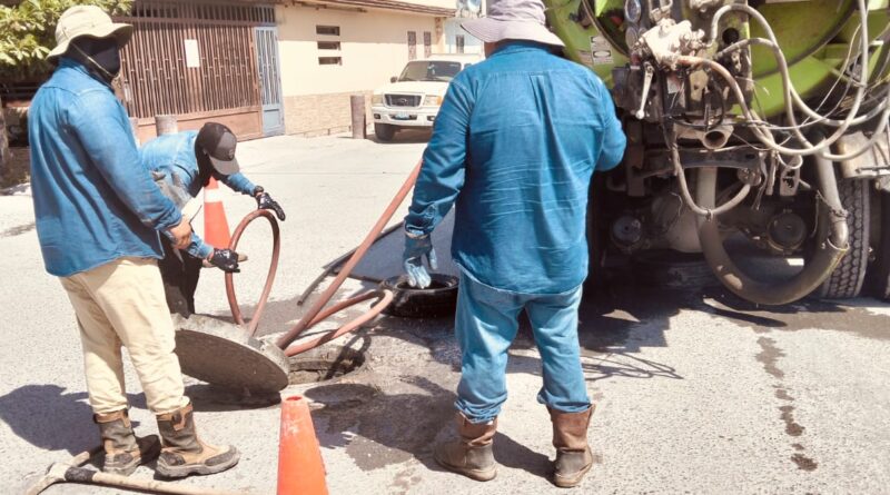 La Comisión Municipal de Agua Potable y Alcantarillado de Reynosa llevó a cabo labores de limpieza de pozos y sondeo de la línea general de drenaje sanitario en diversas calles de la colonia Balcones de Alcalá a fin de mejorar el funcionamiento de la red y prevenir obstrucciones.