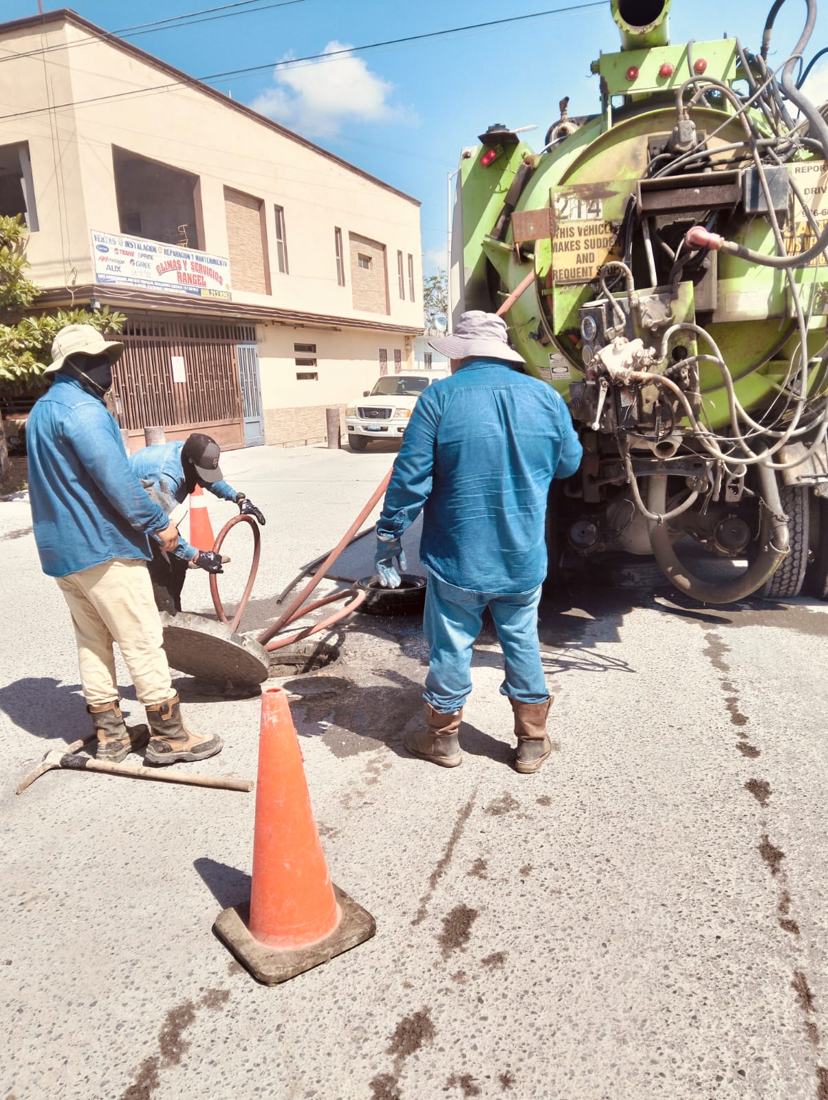 La Comisión Municipal de Agua Potable y Alcantarillado de Reynosa llevó a cabo labores de limpieza de pozos y sondeo de la línea general de drenaje sanitario en diversas calles de la colonia Balcones de Alcalá a fin de mejorar el funcionamiento de la red y prevenir obstrucciones.