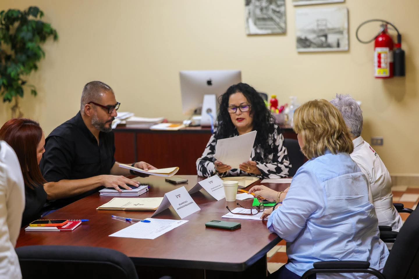 En las mesas de trabajo participan: el Regidor Alan Efrén Domínguez Jiménez, Coordinador de la Comisión Legislativa en el Cabildo; por parte de la sociedad civil, Irma Amelia García Velasco; Verónica Iliana Calles Calles, encargada del despacho de la Coordinación del Archivo Municipal y el Contralor Ernesto Gómez DE la Peña.