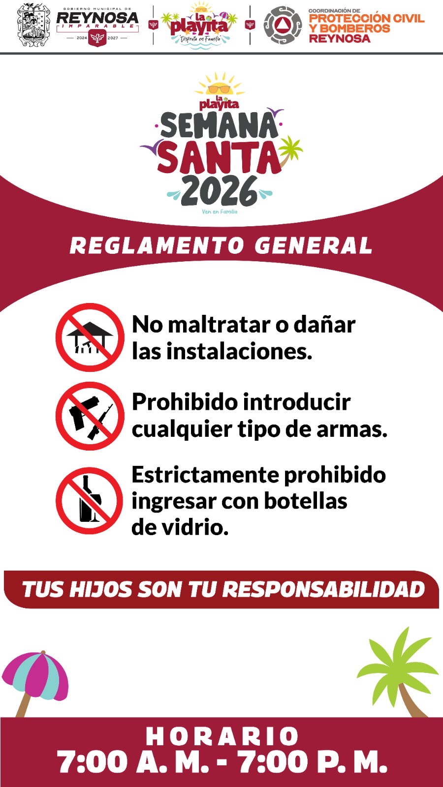El objetivo es concientizar a las familias sobre la importancia de cuidar a sus hijos menores de edad y mantener un entorno seguro durante el periodo vacacional, por lo cual se les invitó a cumplir los reglamentos que rigen el centro recreativo y que ayudan a mantener un entorno seguro.