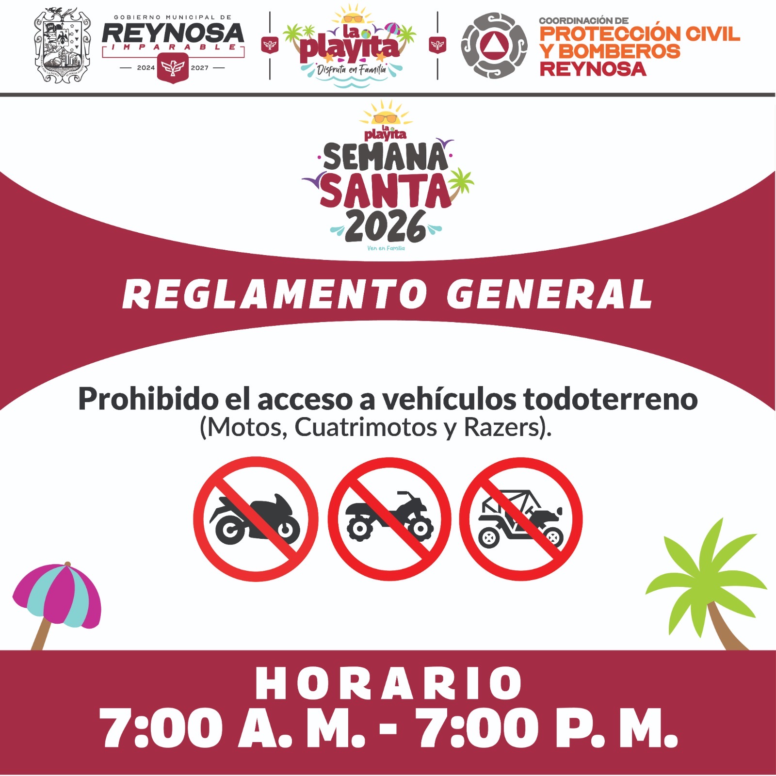 Para ofrecer un buen nivel de seguridad a las familias que visitan La Playita de Reynosa, el Gobierno Municipal restringió la entrada de vehículos todo terreno, motos, cuatrimotos y razers no pueden ingresar al centro recreativo.