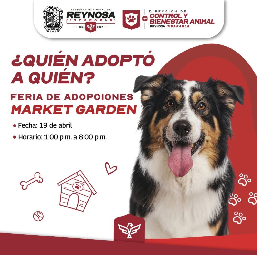 El Alcalde Carlos Peña Ortiz invita a la comunidad a participar en la Feria de Adopciones que se realizará durante el Market Garden en Riviera Eventos, salón ubicado en Periférico Luis Echeverría con libramiento y bordo del río Bravo.