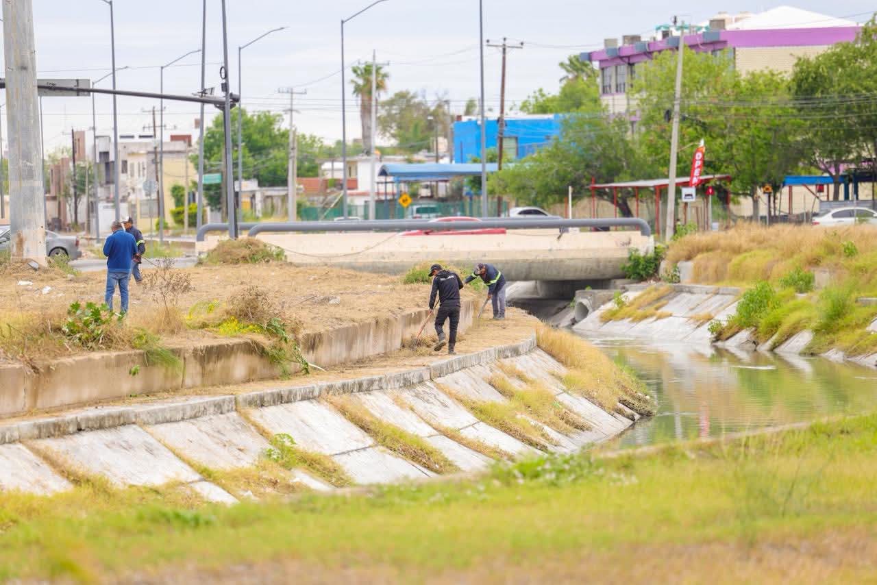 Dando impulso permanente al programa de mantenimiento de la infraestructura hidráulica, el Presidente Municipal Carlos Peña Ortiz supervisó el desazolve del Dren Reynosa, en el tramo de las colonias Miguel Hidalgo, Vicente Guerrero, Ribereña, y Del Valle.