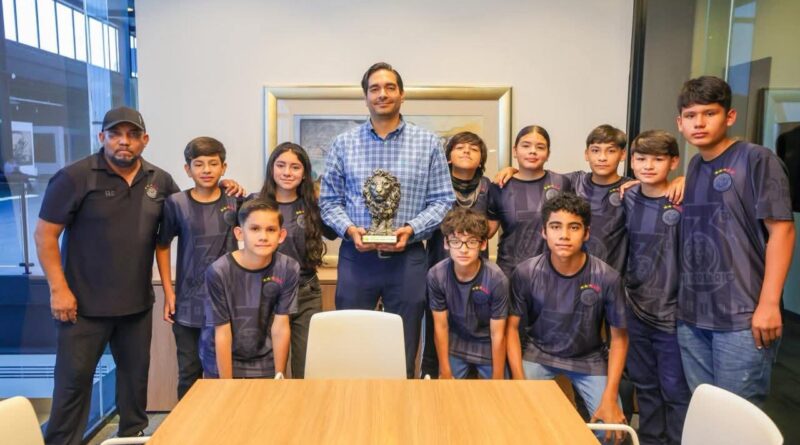 El Presidente Municipal de Reynosa, Carlos Peña Ortiz, recibió a los integrantes del equipo infantil de futbol Leones Negros, destacando el orgullo que representa para la ciudad contar con niñas y niños que portan con pasión, disciplina y compromiso el nombre de Reynosa.