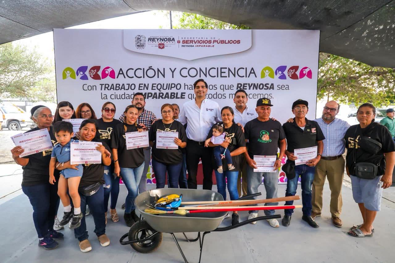 “Queremos evitar el riesgo en todas las colonias de Reynosa. Depende también de los ciudadanos de cada colonia mantener limpias nuestras calles, nuestras casas, nuestros lotes y las áreas verdes para que podamos juntos vivir en una mejor ciudad”, declaró.