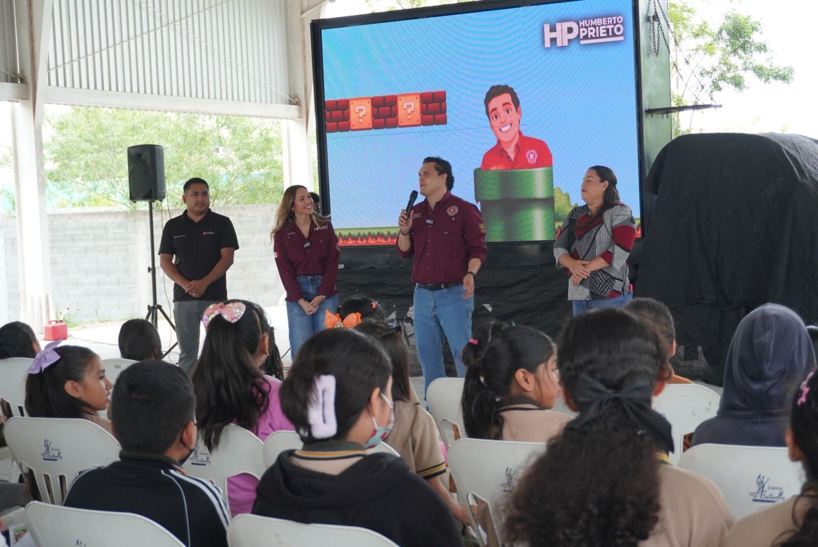 Los alumnos de la escuela primaria Carlos Fuentes Macías de la col. Villa Diamante, así como las familias del fracc. Valle Soleado, recibieron con alegría y agrado la visita del diputado Humberto Prieto Herrera, quien, junto a su esposa Verónica Garza de Prieto, encabezó la función de cine, disfrutando los presentes de un momento de convivencia en el marco de la celebración del Día del Niño.