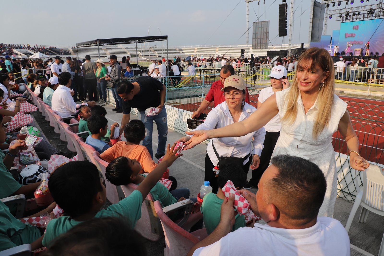 La senadora Maki Ortiz asistió a la celebración del Día del Niño 2026 en la que más de 15 mil personas disfrutaron del show infantil de Luli Pampín, organizado por el presidente municipal Carlos Peña Ortiz. en el Polideportivo Reynosa,