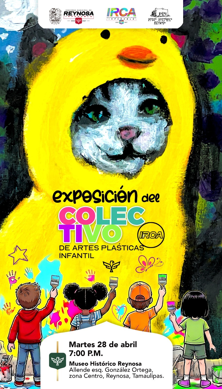 El Gobierno de Reynosa, que preside el Alcalde Carlos Peña Ortiz, invita este martes 28 de abril a la inauguración de la exposición del Colectivo de Artes Plásticas Infantil del Instituto Reynosense para la Cultura y las Artes, que se llevará a cabo a las 7:00 P. M. en el Museo Histórico Reynosa.