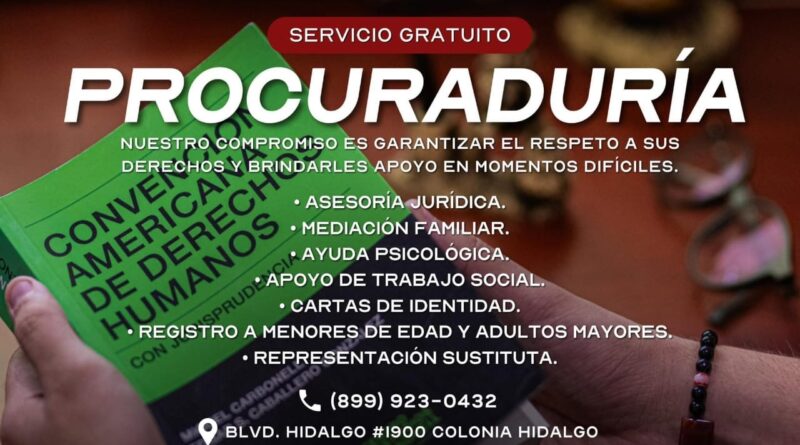 El Sistema DIF-Reynosa que preside Carlos Luis Peña Garza, pone a disposición de la ciudadanía el servicio de apoyo legal, a través del área de Procuraduría, con el objetivo de brindar orientación y respaldo a quienes enfrentan alguna situación jurídica.